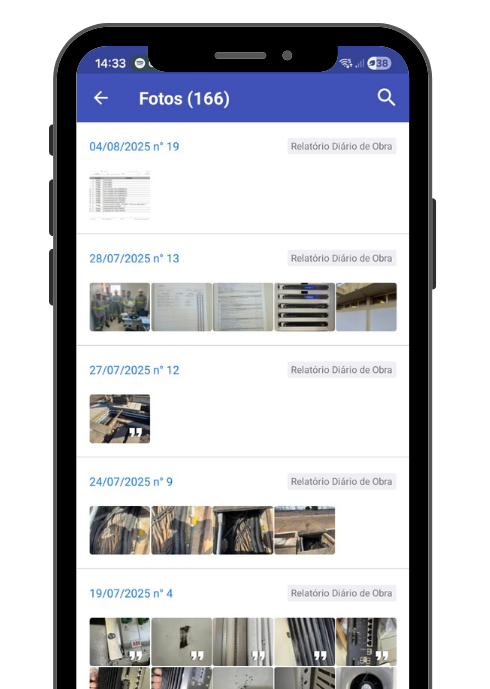 Com o aplicativo Diário de Obra, o registro é feito de forma padronizada e rastreável, garantindo transparência total na execução e agilidade na tomada de decisões.